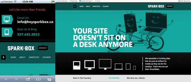 - Redundancy isn't a bad thing - Putting contact information in multiple places makes it easier to find. The fine people at Sparkbox include their contact information 3 times on their homepage without being overbearing.