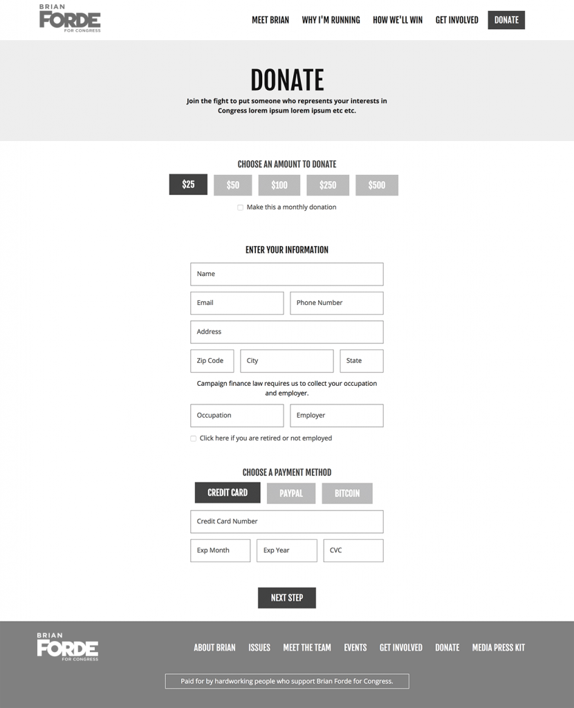 Brad Frost Launching a Campaign Website...QuicklyI had the opportunity to make a website for Brian Forde, who is running for Congress in Orange County, California. Brian got in touch after reading my Designing an Effective Donation Form blog post, and wanted to bring that thinking to his campaign website. So on July 7th we hopped on a call, where I learned that Brian worked as a Senior Tech Advisor in the Obama White House and is running for office so he can improve peoples’ lives, use technology to make government more capable & efficient, and combat the toxic, xenophobic views & policies coming from the other side. All this very much aligned with my own values, so while I typically shy away from political stuff, I decided to take on the project. Then came the big question: when does the site need to be live? “July 17th,” he said. Of course, that meant the site would need done in a little more than a week.