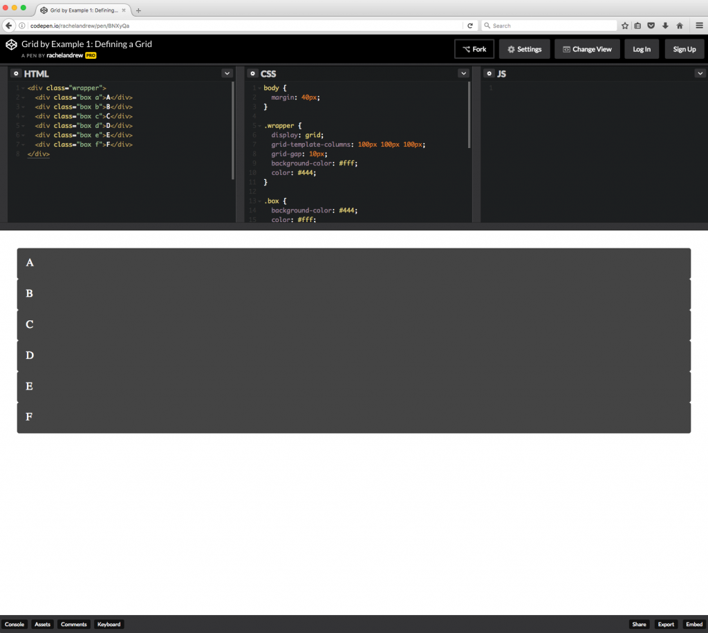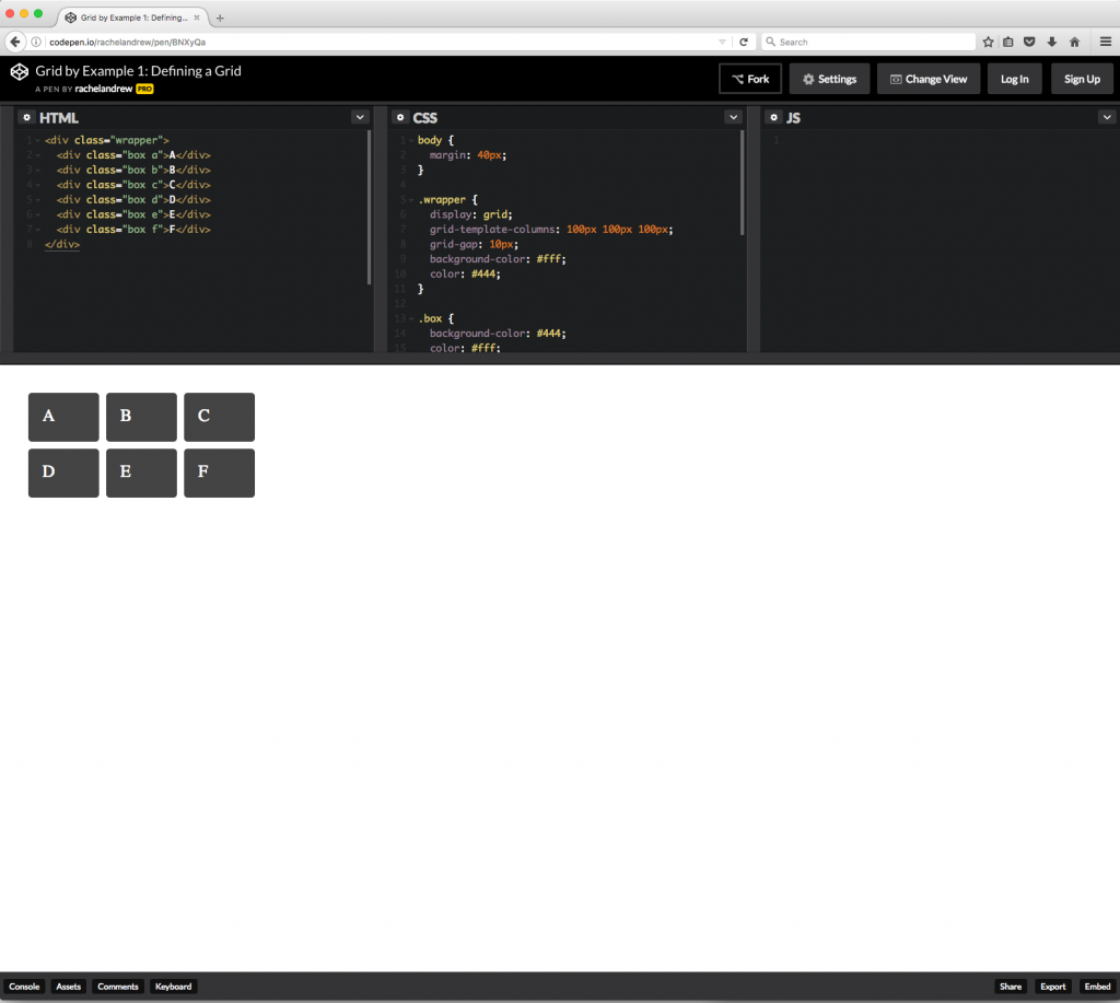 Neat! Well, guess it's time to really learn grid. I've been in so many of Rachel Andrew's and Jen Simmon's conference talks, but have never been in a position to put pen to paper and actually play with grid on my own. Until now! I'll be using their fantastic resources to learn: